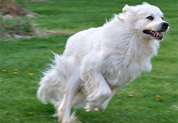 Until fairly recent times, Great Pyrenees were used to pull small carts and deliver milk in Belgium and northern France. They have also been sled dogs, pack dogs and family companions. Even today, the Great Pyrenees is considered a fine livestock-guarding dog. |