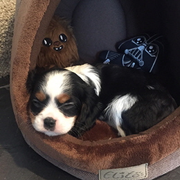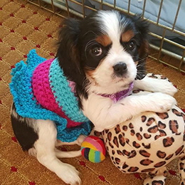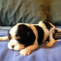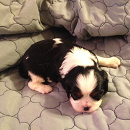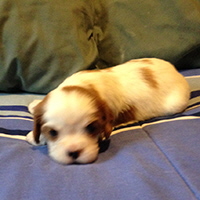 This little Blenheim Boy is named Charlie. He was the biggest of the litter and is living the life in Midland!